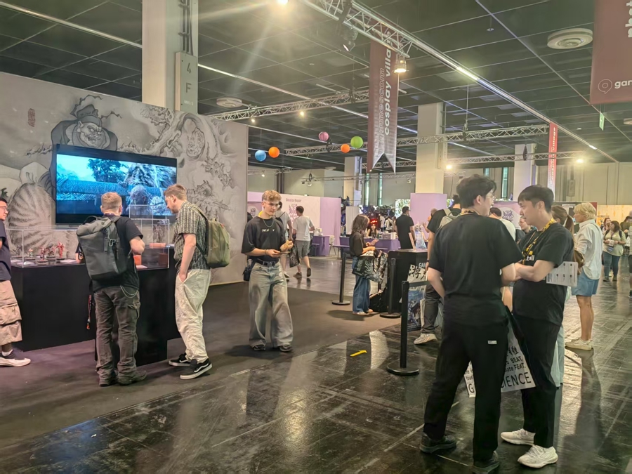 今年科隆游戏展被业内誉为“中国时间”,不仅中国厂商参与数量创新高,在展台搭建上也投入颇大,甚至比海外展商还要亮眼。《原神》《王者荣耀:世界》《明日方舟:终末地》等国产游戏都在会展中心的通道里有巨幅海报,上面标注场馆信息,方便玩家前往,而游戏科学不仅展台小,会展中心里也看不到任何海报指引,全靠粉丝自行寻路。