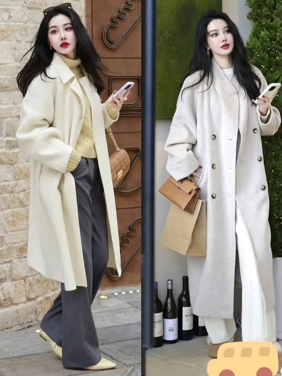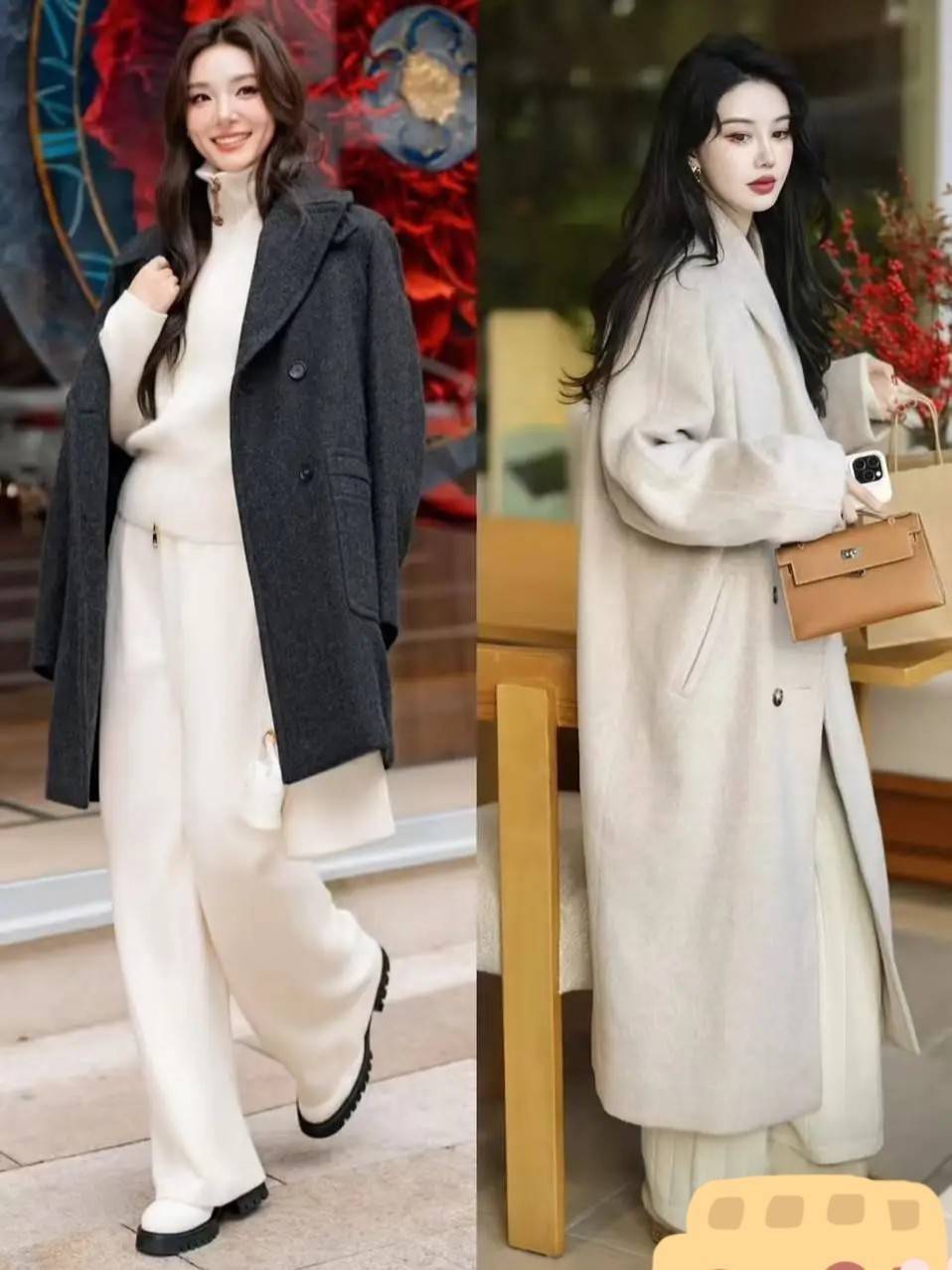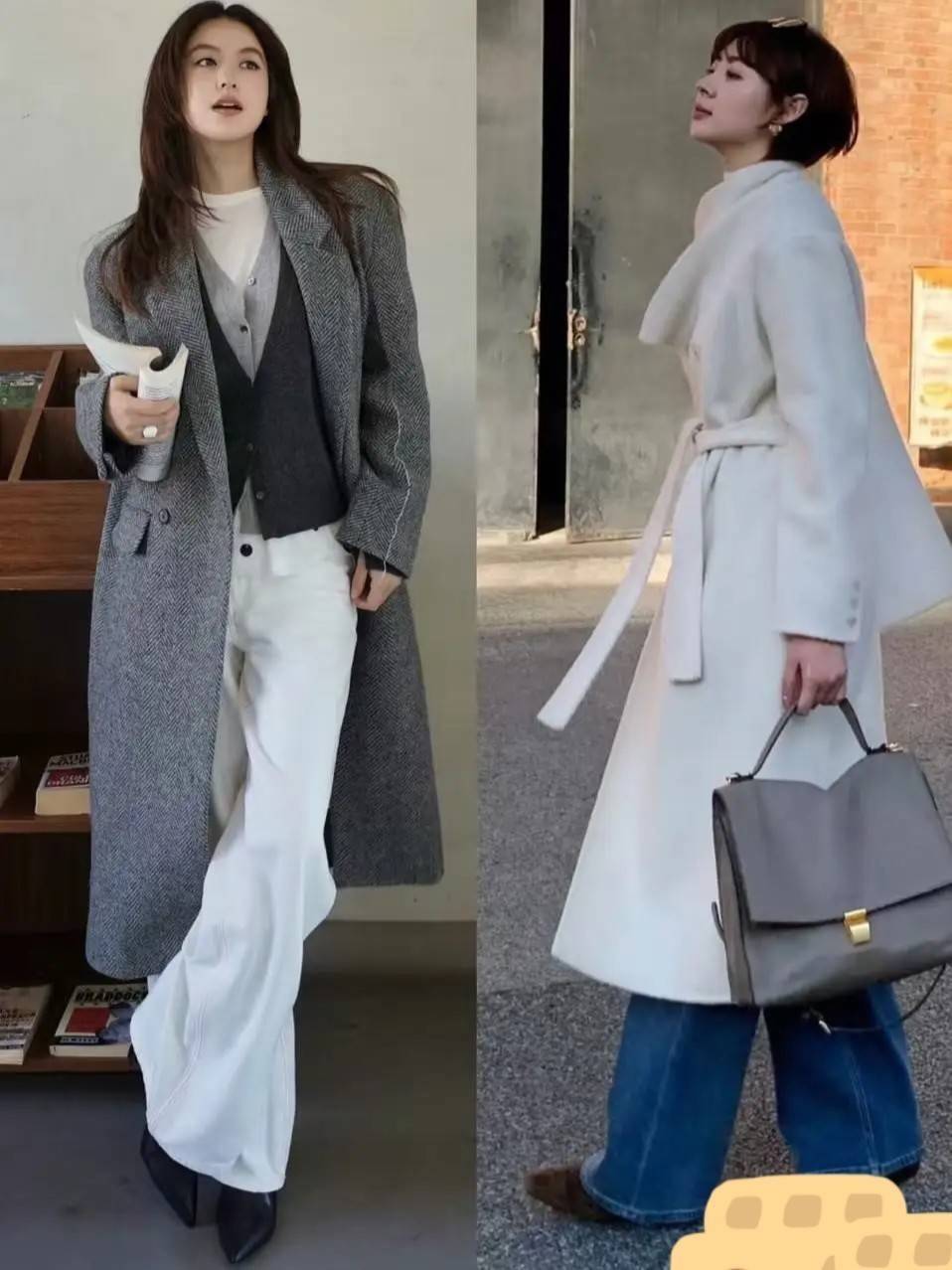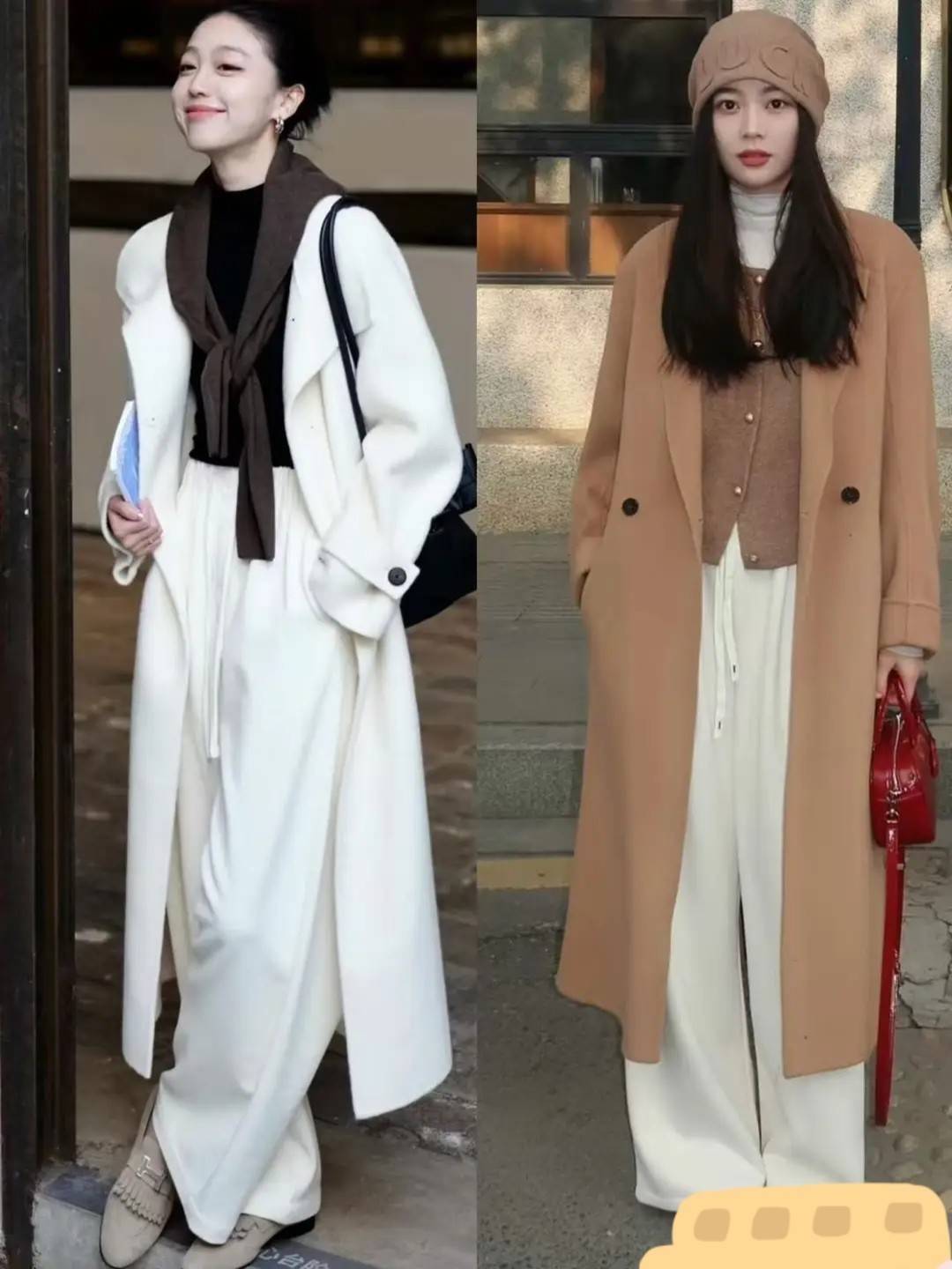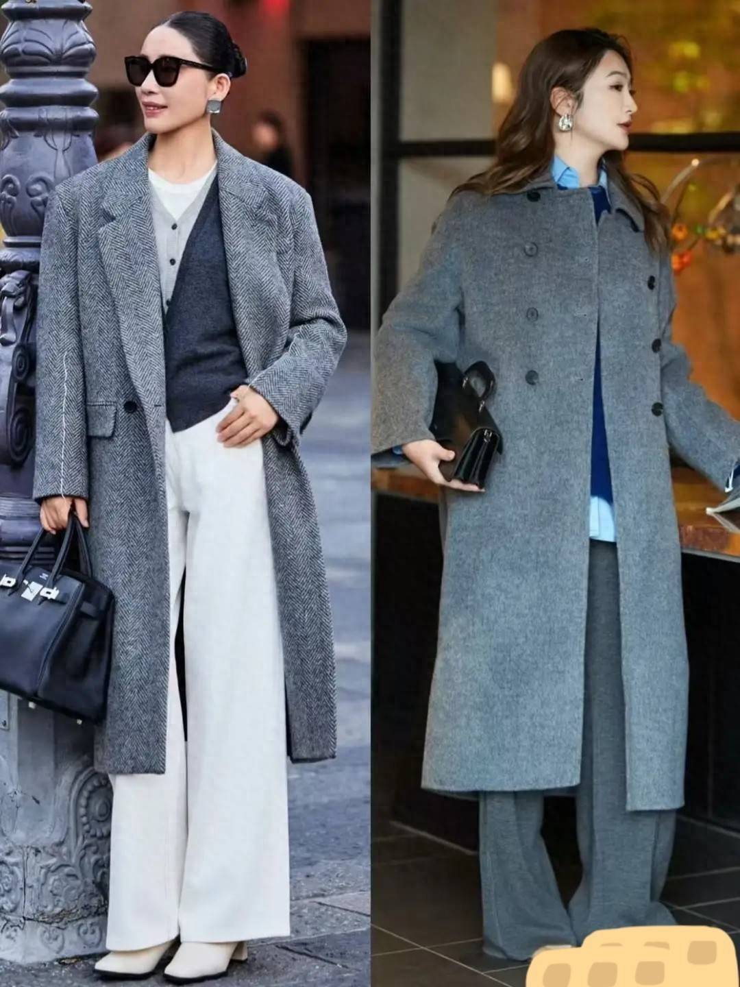 不过不管你选择的是白色的阔腿裤还是灰色的阔腿裤,搭配大衣外套的时候一定也要选择纯色系,大衣外套的色彩越简约越能穿出高级感,降低我们的穿衣配色的出错率。